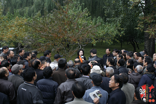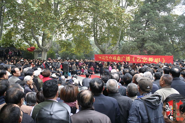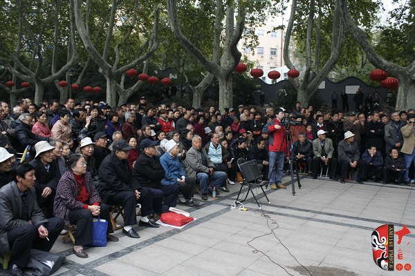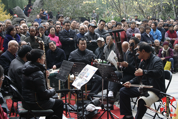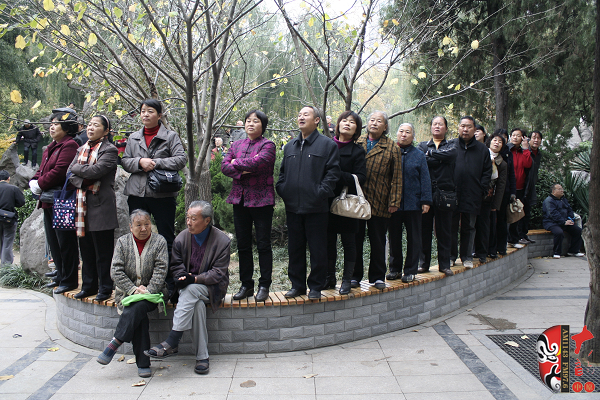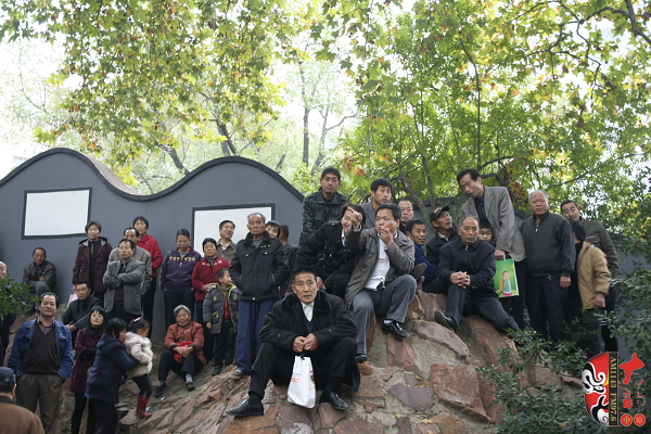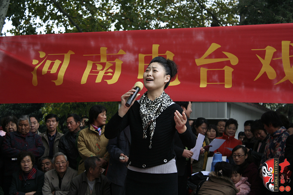 觀眾當(dāng)中,有從廣播中得知消息早早就趕來的戲迷,也有周末游園駐足的市民?;顒釉媱澗劈c半開始,在現(xiàn)場戲迷們的熱情要求下,活動主辦方之一——鄭州梓軒藝術(shù)團(tuán)的團(tuán)員們九點剛過便開始了暖場演出。 這是一個由戲迷自發(fā)組織的藝術(shù)團(tuán),他們經(jīng)常在公園演唱,為廣大戲迷所熟悉和喜愛,也為豐富群眾的業(yè)余文化生活做出了很大的貢獻(xiàn)。