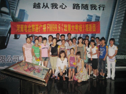 由河南電臺(tái)旅游廣播《故事大秀場(chǎng)》組織的《無(wú)人駕駛》觀影團(tuán)合影