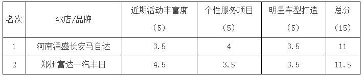 按照慣例,還是從排名倒數(shù)第一(黑榜第一名):河南涌盛長安馬自達(dá)4S店,不過11分已經(jīng)是不錯的成績了,只怪其他店整體水平太高,就認(rèn)慫吧~