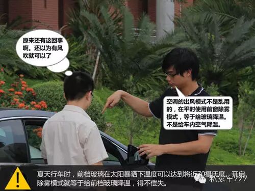誤區(qū):大多車主都誤以為空調(diào)開到最大檔會(huì)比較耗油,所以會(huì)盡量選擇開小風(fēng)量。其實(shí)不然,空調(diào)在使用過程中,往往會(huì)吸進(jìn)一定灰塵,從而形成污垢,待時(shí)間一長,則會(huì)發(fā)生霉變,若長期以小量風(fēng)為主,是很難把空調(diào)內(nèi)的積垢吹出來的,反而會(huì)影響身體健康。