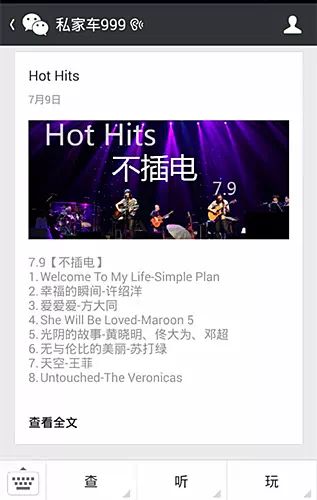 節(jié)目過程中,你只要發(fā)送“hot”到微信公眾平臺,便可以得到今天《Hot Hits》歌單(如下圖):