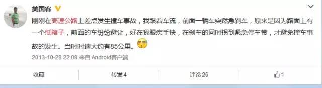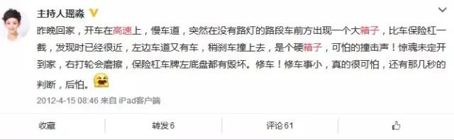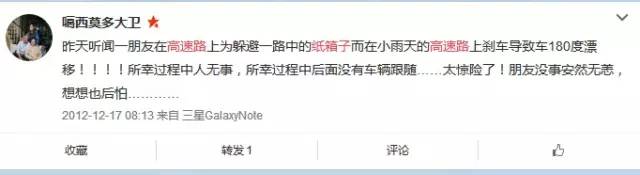 其實微博上關(guān)于高速公路上撞上紙箱子的事件,屢次發(fā)生: