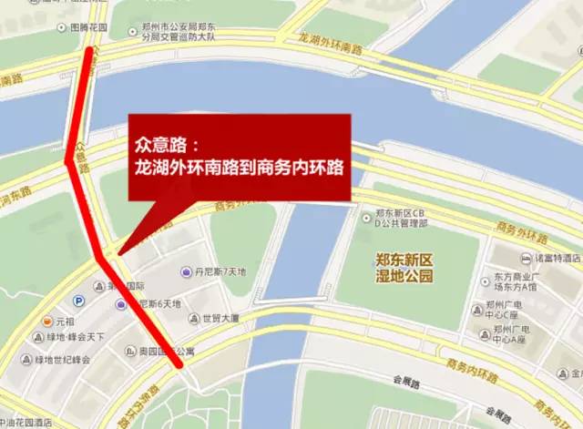 繞行路線:過往車輛和行人可沿中州大道、金水東路、黃河?xùn)|路、龍湖外環(huán)南路、農(nóng)業(yè)東路等道路繞行。