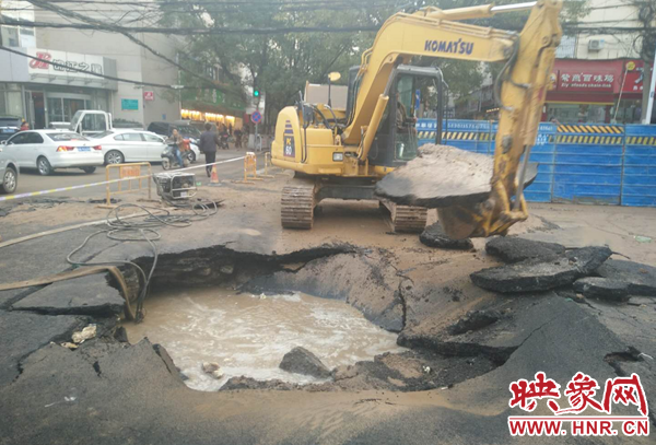 鄭州自來(lái)水公司迅速組織維修人員到場(chǎng)搶修。負(fù)責(zé)該區(qū)域維修任務(wù)的三強(qiáng)公司政七街維修隊(duì)維修一班第一時(shí)間趕赴現(xiàn)場(chǎng)止水、搶修。維修人員分班作業(yè),一組擺放警示標(biāo)志,協(xié)調(diào)交警封閉道路,一組緊急關(guān)閉相關(guān)閥門實(shí)施止水,調(diào)運(yùn)搶修機(jī)械、安排送水車趕往現(xiàn)場(chǎng)。