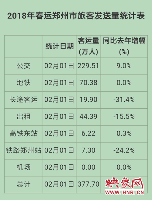 2月2日,映象網(wǎng)記者從鄭州市交通委獲悉,春運(yùn)第一天鄭州公交、高鐵客運(yùn)同比增長(zhǎng),客運(yùn)、出租車(chē)呈下降趨勢(shì)。