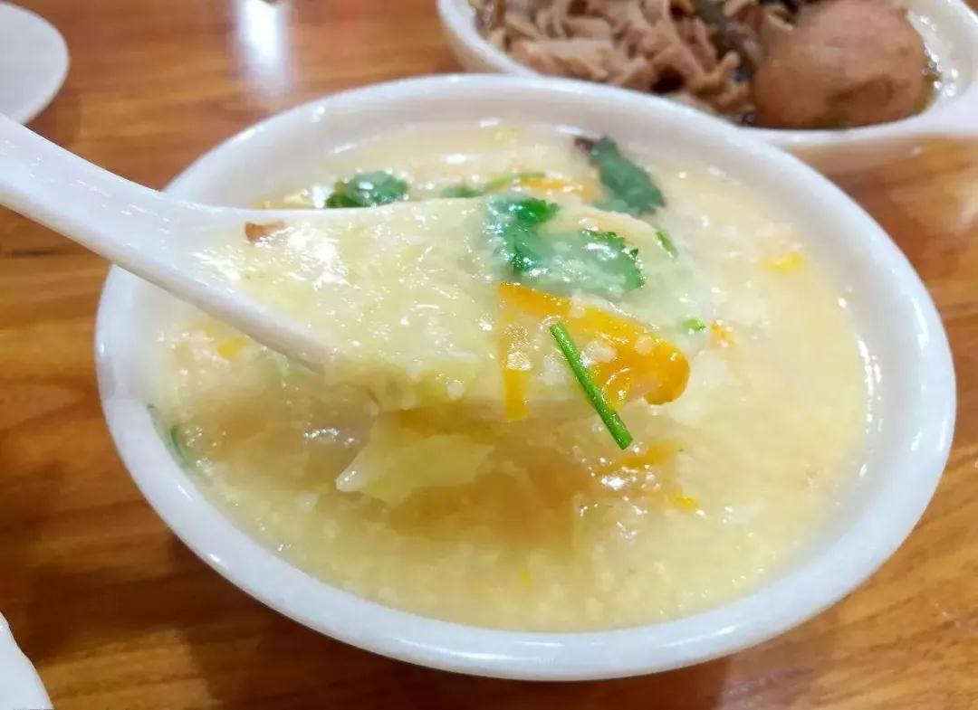 安陽殷墟管理處講解員羅斌:“這種粉漿飯,酸酸的像北京豆汁一樣發(fā)酵型的,然后方面里面會(huì)放上這種白菜,豆子呀之類的,特別呼呼呼呼的一鍋,然后吃到比較暖胃。就是綠豆釀的,所以他夏天吃比較好。 清熱解渴”