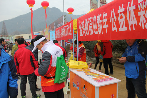 全民健身活動連年開展,并且已經形成全國聯動,區(qū)域互動,百姓自動的蓬勃景象,這離不開體彩彩民朋友點滴的愛心匯聚和體彩人不分晝夜的堅持拼搏,為了展示體育彩票的公益性和玩法樂趣,信陽分中心還在開幕式現場搭建了四張大型展板,“公益體彩 快樂操場”“送體育進鄉(xiāng)村”“體彩?新長城助貧困大學生項目”“貧困受災地區(qū)愛心捐贈”等等,散發(fā)出一縷縷公益光芒,溫暖著寒冬里登山人的心。 “河南體彩攜手京東購物送300萬大樂透代金券”“購買頂呱刮彩票 搶百萬紅包 贏華為手機活動”,特別吸引了年輕登山人群的圍觀和關注。信陽分中心開展戶外即開型銷售主推“金雞納福”新年套票,雞年登雞公山購買“金雞納福”頂呱刮彩票有著特殊的意義,購買滿30元還有登山“能量包”相送,為健身登高增添動力。