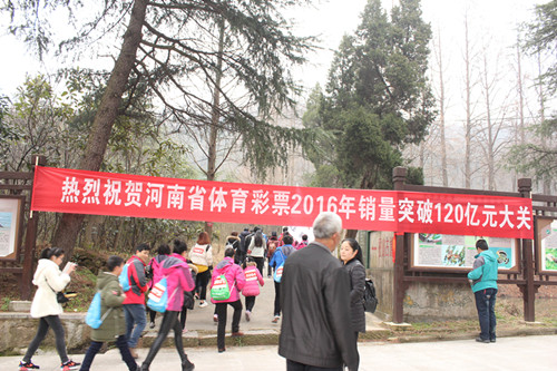 2017年1月1日元旦佳節(jié),“中國體育彩票”全國新年登高健身大會(華中主會場)暨信陽新年登雞公山健身大會“精彩開幕,來自社會各界的3000余名群眾、體彩代表及健身愛好者參加活動。新年登高意義深遠,在參與全民健身鍛煉體魄的同時,還能帶來美好的希望。在協(xié)辦單位河南省體育彩票管理中心的指示下,體彩信陽分中心組織了80名網點業(yè)主組成代表隊參賽,并在開幕式現場舉行了多種形式的宣傳活動。