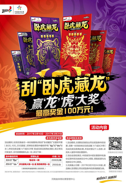 經(jīng)典套票激情會面,三重好禮重磅活動,百萬獎(jiǎng)金愉悅暢享,盡在體彩“臥虎藏龍”。