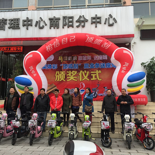 10月30日 河南體彩洛陽分中心向獲獎(jiǎng)彩民頒發(fā)37輛電動(dòng)車