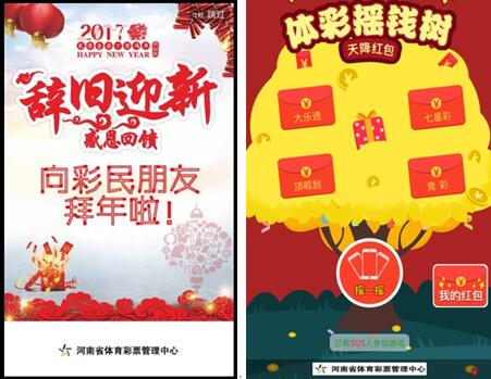 活動期間微信搜索“河南體彩”,先添加關(guān)注,再在對話框中回復(fù)關(guān)鍵字“搖錢”,即可按提示進入游戲,搖動手機即有機會搖取“現(xiàn)金紅包”,先到先得,搶完為止。