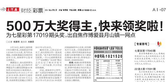 [摘要] 2017年4月20日,河南省體彩中心工作人員癡癡等到最后,焦作500萬(wàn)元七星彩大獎(jiǎng)仍無(wú)人領(lǐng),這注大獎(jiǎng)遺憾成為棄獎(jiǎng),獎(jiǎng)金全部納入彩票公益金。