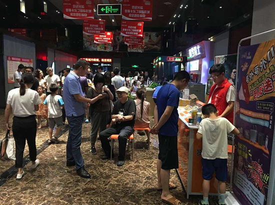 7月底,《戰(zhàn)狼2》一經(jīng)放映,票房即屢創(chuàng)新高,人們都紛紛到電影院觀賞這部精彩的電影。經(jīng)常在鄭州西郊電影院看電影的人們,會發(fā)現(xiàn)很多電影院入口處多了一個(gè)新柜臺,體彩“頂呱刮”銷售專用柜臺。銷售桌醒目的顏色、展柜內(nèi)齊全的票種、各色禮品吸引了人們的目光。等待入場的人們紛紛來到銷售桌周圍,了解頂呱刮的玩法,并開始在“頂呱刮”票種里尋寶。
