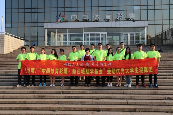 2017年,首批得到“中國體育彩票·新長城助學基金”資助的信陽師范學院2013級優(yōu)秀大學生畢業(yè)之際,河南省體育彩票管理中心還邀請其中的部分學生代表,在老師的帶領下到北京觀摩中國體育彩票現(xiàn)場開獎,在他們踏入社會進入工作崗位之前,開闊眼界并深入了解和見證中國體育彩票作為國家公益彩票的公益屬性和公信力。