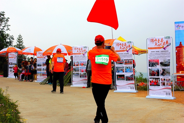 河南體彩管理中心信陽(yáng)分中心在賽道的4公里處設(shè)置了“河南體彩黨支部第十四小組黨員服務(wù)站”,布置了休息區(qū)域,免費(fèi)提供溫開(kāi)水為大家取用。還以概率游戲的大樂(lè)透玩法為主要宣傳內(nèi)容,張貼了宣傳品,現(xiàn)場(chǎng)為大家介紹大樂(lè)透的玩法知識(shí)。崎嶇的山路上,沿路擺放了體彩頂呱刮的銷(xiāo)售區(qū),由網(wǎng)點(diǎn)業(yè)主自發(fā)開(kāi)展“掃碼加好友”送即開(kāi)彩票的線(xiàn)上拉新活動(dòng),另外,信陽(yáng)分中心還為群眾登山愛(ài)好者免費(fèi)提供了簡(jiǎn)易的登山杖,確保大家的登山安全。