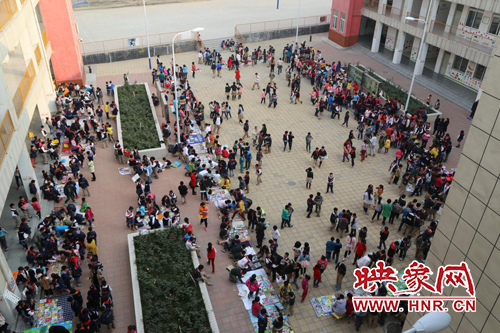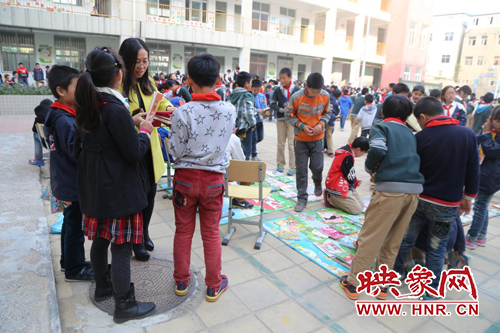 映象網教育頻道訊(記者 李照華 通訊員 張俊杰)為培養(yǎng)孩子們節(jié)約資源、愛護環(huán)境的意識和良好的行為習慣,讓學生們體驗“公平買賣”和“勞動快樂”,結識更多的朋友,本著“你的多余,我的需要”理念,通過舊書循環(huán)利用,以“書換書”和“錢買書”的方式,推廣循環(huán)經濟、生態(tài)環(huán)保的思想。經開區(qū)外國語小學經過前期精心的準備,于2015年11月4日下午,順利組織開展了主題為“悅分享 越快樂”的圖書“跳蚤市場”活動,讓學生把家中閑置的圖書在跳蚤市場活動中與同學等價交換或錢物交換。