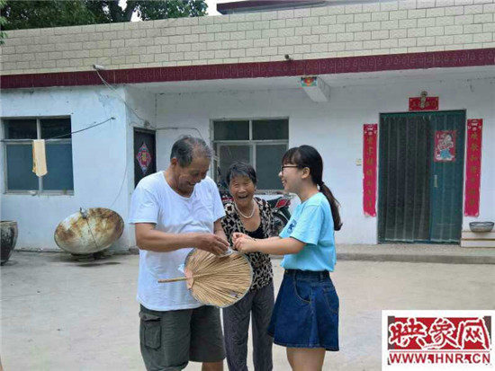不多時(shí),村委會(huì)的辦公室中就擠滿了聞?dòng)嵍鴣淼拇迕?,志愿者們一一為他們測(cè)量血壓,不少村民離開前邀請(qǐng)志愿者們道“孩子,來俺家,給你們下碗好吃的撈面條”,更多的村民測(cè)完血壓后并未立即離去,而是留下與志愿者們親切交談,村民的質(zhì)樸與志愿者的奉獻(xiàn)精神在這一間小小的辦公室中緩緩交融,在炎炎夏日里帶來些許清涼。