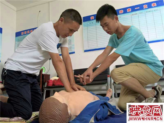 與此同時(shí),地上擺放的人體模型引起了村民的極大興趣,他們?cè)谀P椭車梢蝗Γ贿呌^察志愿者的演示一邊提問。部分村民還走上前來,在志愿者的指導(dǎo)下練習(xí)剛剛學(xué)到的心肺復(fù)蘇術(shù)。