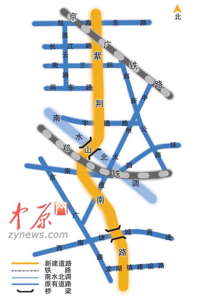 紫荊山南延道路的打通將鄭州市區(qū)與新鄭龍湖緊密連接起來(lái),該工程預(yù)計(jì)到2016年主體完工,屆時(shí),龍湖大學(xué)城的學(xué)生通往鄭州市區(qū)將更為便利,而鄭州市民去往新鄭機(jī)場(chǎng)也多了一條捷徑。