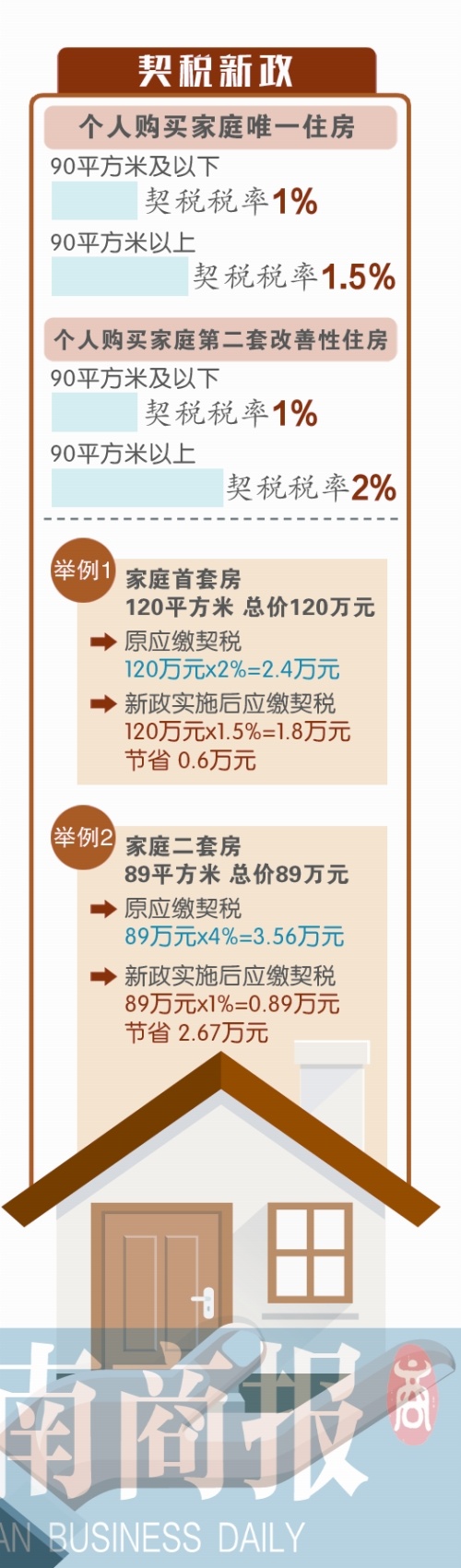 買(mǎi)一套120平方米大的住房,原來(lái)動(dòng)輒需要繳納兩萬(wàn)多元的契稅,新政實(shí)施后能省幾千元;買(mǎi)二套房原來(lái)動(dòng)輒需要繳納三四萬(wàn)元的契稅,以后最少能省一半。