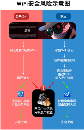 金山毒霸安全工程師趙昱表示:“WIFI釣魚熱點(diǎn)其實(shí)就是在數(shù)據(jù)傳輸?shù)纳嫌卧O(shè)置了一道閥門,所有客戶的數(shù)據(jù)都通過這個(gè)閥門與相應(yīng)的網(wǎng)站進(jìn)行傳輸,黑客通過一些特定的攻擊設(shè)備,就可以對這些數(shù)據(jù)進(jìn)行記錄和抓取分析。這樣,客戶的相關(guān)信息就會(huì)被黑客獲取?!?