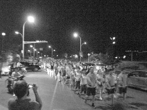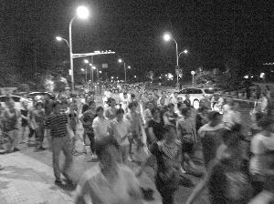7月8日晚,現(xiàn)代快報記者在珠山景區(qū)旁的道路上,身旁不斷有暴走族疾行而過,他們呈方隊出行,少則幾十人多則上千人,大大小小的方隊有幾十個。