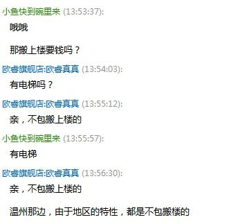 據(jù)小編調查發(fā)現(xiàn)(如下圖),部分商家表示免費送貨,但卻不送上樓,上樓需要額外支付搬運費;也有部分商家是按樓層高低收費,如:三樓以下不收“上樓費”,三樓以上,收費按樓層高度遞增。這個問題消費者一定要與客服交流清楚,否則商品運來了,還要掏錢才能進屋,或者要自己動手搬,麻煩就大了。
