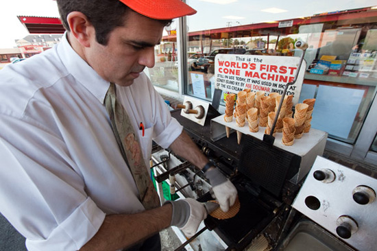 諾??耸械亩宫敱ち璧?Doumar's)因艾比?豆瑪在1904年的圣路易斯世界展覽會(huì)上發(fā)明了美國(guó)第一支蛋卷冰激凌而聞名于世。嘗一下百年蛋卷機(jī)做出來(lái)的冰激凌,還是那古老而甜蜜的味道。