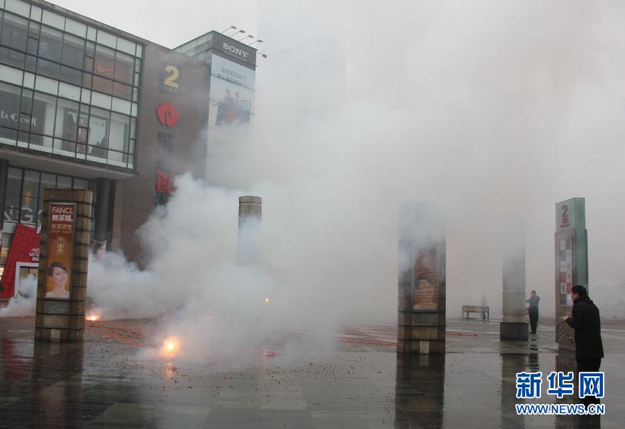 2月14日,浙江寧波一商家在店前廣場燃放“開門炮”。當日是大年初五,我國民間有初五迎財神的習俗,一些商家也會選擇這一天燃放“開門炮”迎財神,重新開業(yè)?!伴_門炮”鞭炮齊鳴的同時,也加重了空氣污染。 新華社發(fā)