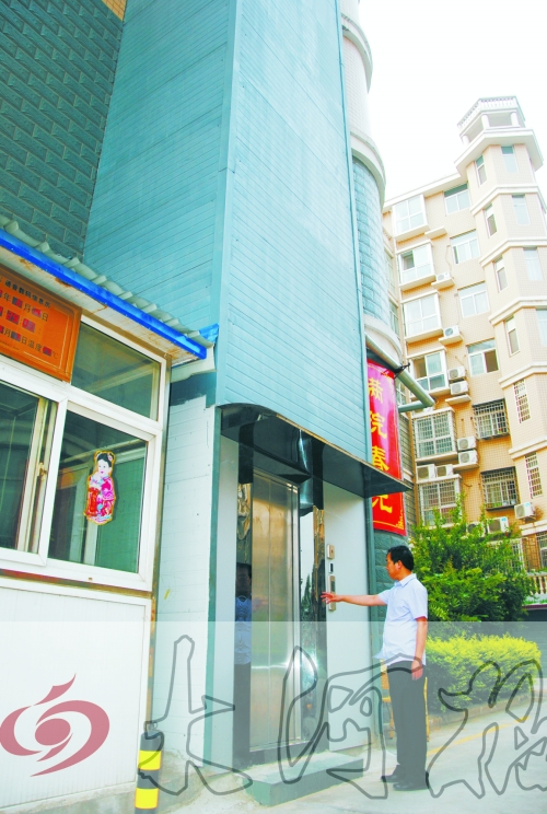 昨日傍晚6時(shí)許,記者在新密市一小區(qū)3號樓前見到了這部依樓而建直達(dá)頂樓7樓的電梯。小區(qū)物業(yè)部的韓經(jīng)理說,這部電梯是去年10月份建成的,僅供7樓住戶李先生家使用。李先生在煤礦工作,家中的經(jīng)濟(jì)條件不錯(cuò)。