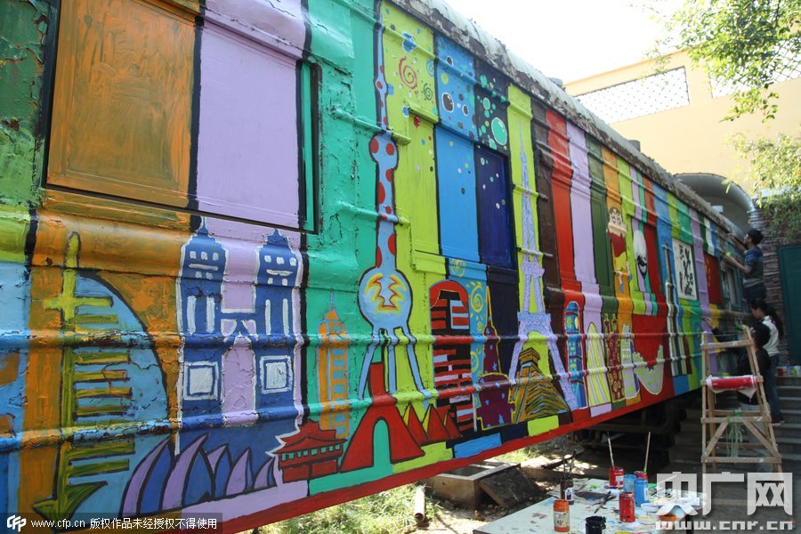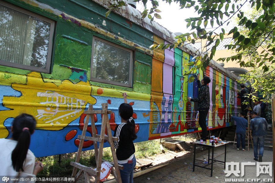 2015年10月10日,鄭州四禾美術(shù)中學(xué)充分發(fā)揮美術(shù)生的優(yōu)勢,對火車車身1進(jìn)行涂鴉改造,使火車宿舍看起來更加漂亮。