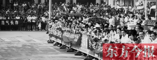 此時,在溫縣殯儀館到溫縣烈士陵園的十幾公里的道路上,早已聚集起了自發(fā)前來送申亮亮最后一程的10萬余名群眾。他們有的胸佩絹花為烈士禱告,有的垂首肅立向烈士致敬,有的眼含熱淚向遠去的靈車行注目禮,盡管他們中絕大多數(shù)此前和申亮亮并不相識,但他們仍用各自不同的方式來表達著對英雄的不舍。