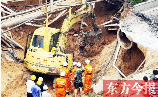 塌方發(fā)生時,一男一女被民警和熱心市民救出。目擊者稱,坑中仍有一名女士和小孩,但警方經過排查,除了名叫張帆的女士,尚未發(fā)現有人員失蹤。今報三批記者輪班蹲守現場,截至3日2時,救援在經歷了近30個小時后,尚未找到張帆?!鯑|方今報記者 夏萍 見習記者 靳亞東 宋迎迎 攝影 首席記者 袁曉強 張曉冬 沈翔 邱琦