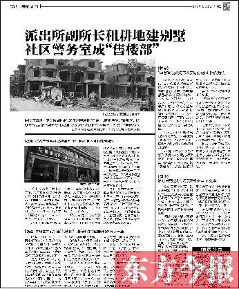 12月20日,東方今報以《派出所副所長租耕地建別墅 社區(qū)警務(wù)室成“售樓部”》為題,報道了項城市一派出所副所長租耕地建別墅銷售一事。報道刊發(fā)后,引起項城市委、市政府高度重視。昨日,記者從項城市委宣傳部獲悉,該副所長被開除公職,項城市委、市政府成立聯(lián)合調(diào)查組,對該區(qū)域開發(fā)事件進行拉網(wǎng)式排查。