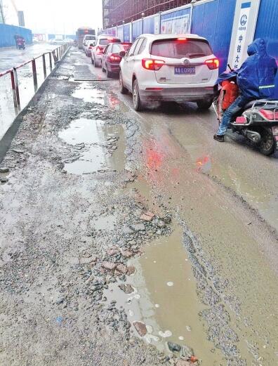 中鐵大橋局該項(xiàng)目部負(fù)責(zé)人楊先生稱,他們每天派出4人對保通路維護(hù),一旦發(fā)現(xiàn)破損,將用泥沙、石子等暫時(shí)填充,有些大坑暫時(shí)放上鋼板,以保證道路暢通。“但這條路車流量太大,沒幾天,大坑就又出現(xiàn)了?!?/p>