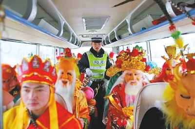 經(jīng)過省交警總隊核實,濟源市交警支隊民警在執(zhí)勤中確實遇到此事。大河報記者隨后聯(lián)系到濟源市交警支隊宣傳科相關(guān)人士,他講述了這個事情。2月7日,濟源交警在濟源市207國道執(zhí)法服務站執(zhí)勤時,在檢查點攔下了“孫悟空”駕駛的一輛大巴車,令交警想不到的是,車上居然還坐著一車《西游記》中的“神仙妖怪”,其中有“唐僧師徒”、“財神”、“土地神”、“小鉆風”、“牛魔王”、“獅子精”、“白骨精”等,“當時我們民警檢查時感覺自己‘穿越’了”。