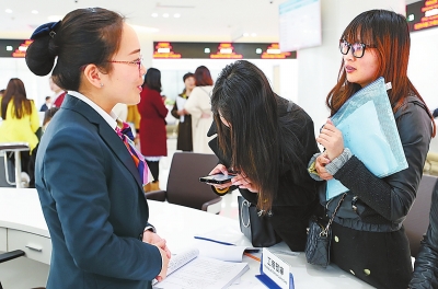 4月1日,中國(guó)(河南)自由貿(mào)易試驗(yàn)區(qū)鄭州片區(qū)綜合服務(wù)中心內(nèi),工商預(yù)審柜臺(tái)正在接受客戶咨詢。⑨7本報(bào)記者聶冬晗攝