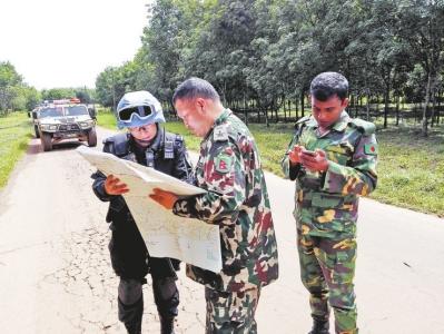 在2016年9月5日,巴波盧遠(yuǎn)程巡邏勤務(wù)中,他和戰(zhàn)友像往常一樣前往星基地與軍事觀察員匯合開展聯(lián)合巡邏勤務(wù)。由于那次屬于跨州遠(yuǎn)程巡邏,路途較遠(yuǎn),在現(xiàn)場聽取軍事觀察員情況通報(bào)時(shí),細(xì)心的他了解到軍事觀察員通報(bào)的巡邏路線與他們接到的指令并不一致,不僅路程更遠(yuǎn),而且要繞道沿途情況不明的小路。在向上級(jí)報(bào)告后,他主動(dòng)向軍事觀察員解釋,可軍事觀察員態(tài)度強(qiáng)硬,聲稱巡邏路線應(yīng)由他們確定。面對這些,他據(jù)理力爭,并對兩種巡邏路線進(jìn)行比對,分析利弊,辯駁得軍事觀察員啞口無言。最終,軍事觀察員同意按照前期指令的巡邏路線行動(dòng)。不僅如此,軍事觀察員還豎起大拇指稱贊“You areprofessional!(你是專業(yè)的)”。而他則將手放在胸前的五星紅旗上,微笑著答道“Thanks!(謝謝)”。