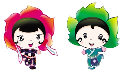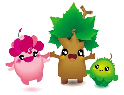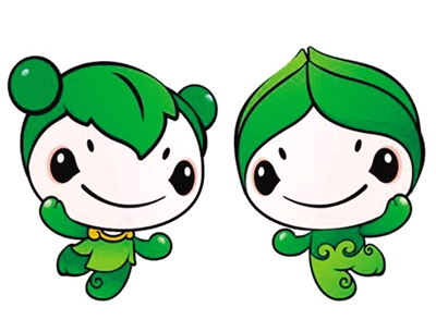 造型以綠色為主色調(diào),園藝氣息濃厚,頭頂不同的花草造型,體現(xiàn)園藝豐富的藝術(shù)形態(tài),手拉手相伴而走,體現(xiàn)自然與人類和諧共生的發(fā)展理念。身體的圖案是中國(guó)青銅器花紋,凸現(xiàn)與中華文明的淵源。