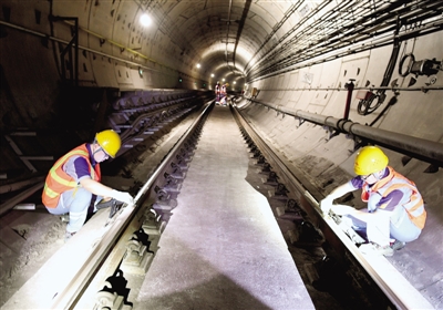 就這樣,忍受著悶熱、枯燥、乏味,他們?nèi)孕杓?xì)心、耐心、聚精會神地對每一條鋼軌進(jìn)行檢查,因?yàn)樗麄冎栏蛇@一行業(yè)的責(zé)任所在,第二天一早,就要有市民乘坐地鐵從這里通過。