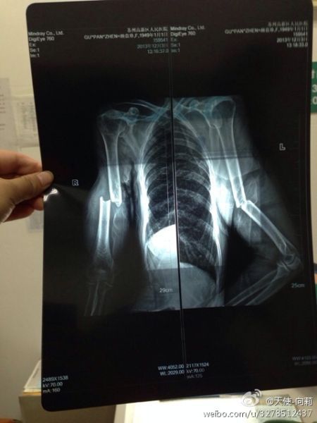 圖為微博上傳“范某某的妻子顧盤(pán)珍手被打斷?!?/font>