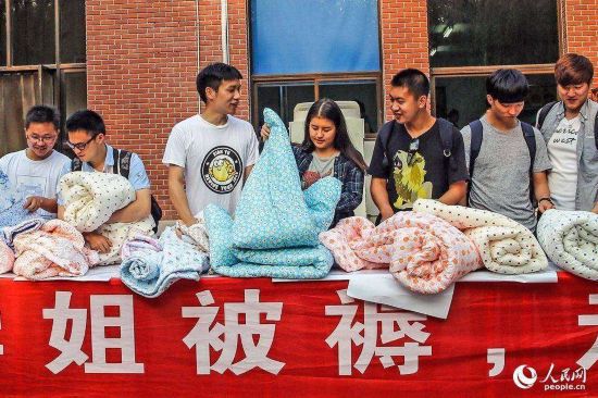 2015年05月31日,北京,清華大學(xué)生物科技學(xué)院大三學(xué)生小磊(左一)花800元買(mǎi)下了兩套學(xué)姐的被子。清華大學(xué)生物科技學(xué)院的大三學(xué)生小磊說(shuō),他在閑魚(yú)app上花了近800元拍下了兩床學(xué)姐的舊被子,就旁人看來(lái)這簡(jiǎn)直就是“天價(jià)”,可小磊卻稱 “不貴!學(xué)姐馬上要回韓國(guó)了,我仰慕她三年,留樣?xùn)|西給自己作個(gè)念想也好”,小磊說(shuō)。