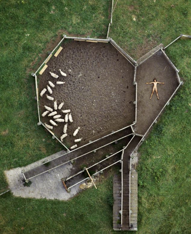 據(jù)悉,1984-1987年間,約翰利用直升機航拍了一組妻子的裸體照片。妻子在農田、養(yǎng)豬場、機場跑道、海邊、鐵軌及移動的汽車上一絲不掛,舒展著四肢。他說:“在那些地點拍攝裸體照片,可以反襯出人類在大千世界的渺小和微不足道?!?/p>