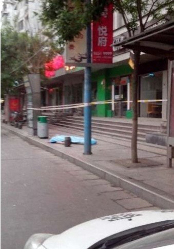 剛跑幾步,就聽(tīng)到“咚”的一聲響了,回頭一看,一名男子掉在垃圾桶旁的人行道上,只穿了一條黑色內(nèi)褲,滿身是血,“從沒(méi)見(jiàn)過(guò)這樣的場(chǎng)面,我嚇住了,身上沒(méi)有電話,只能喊人”。
