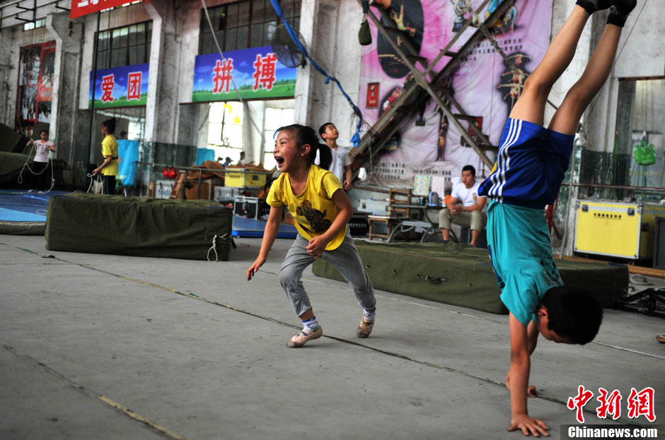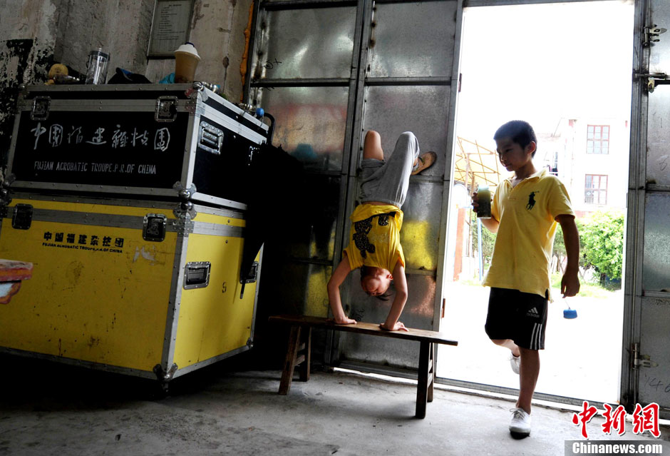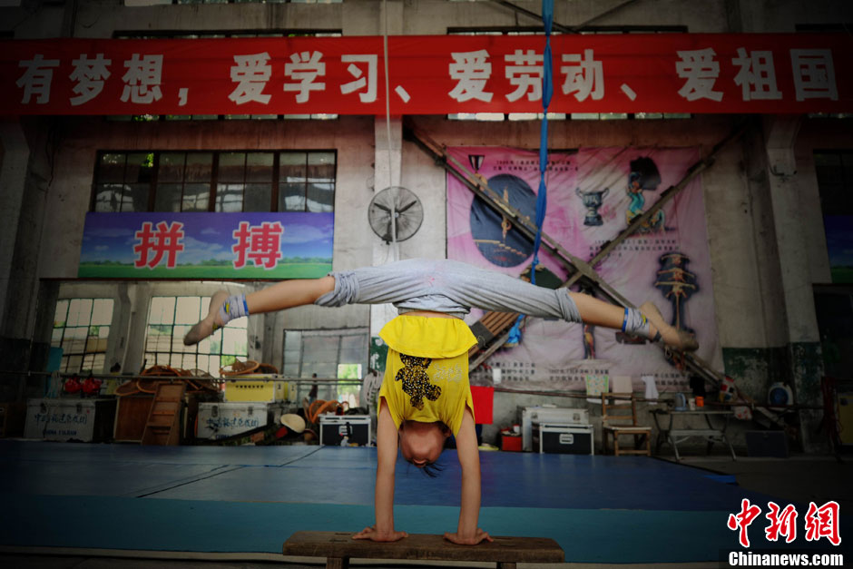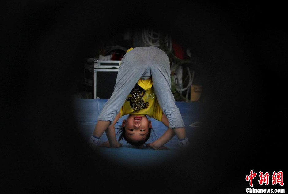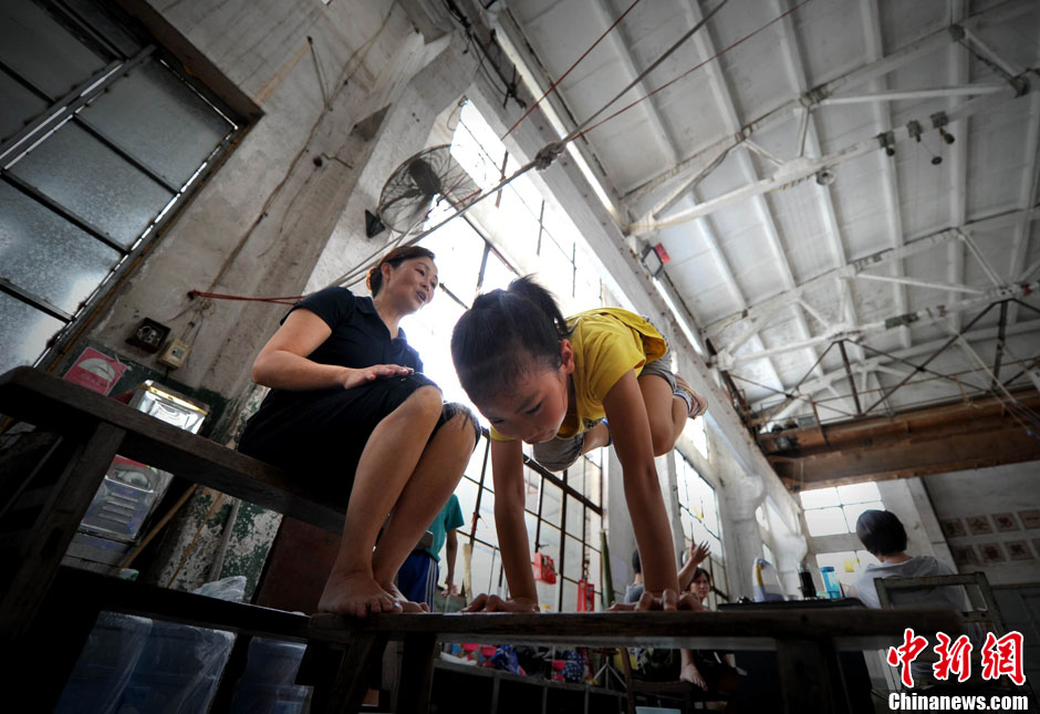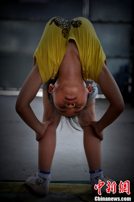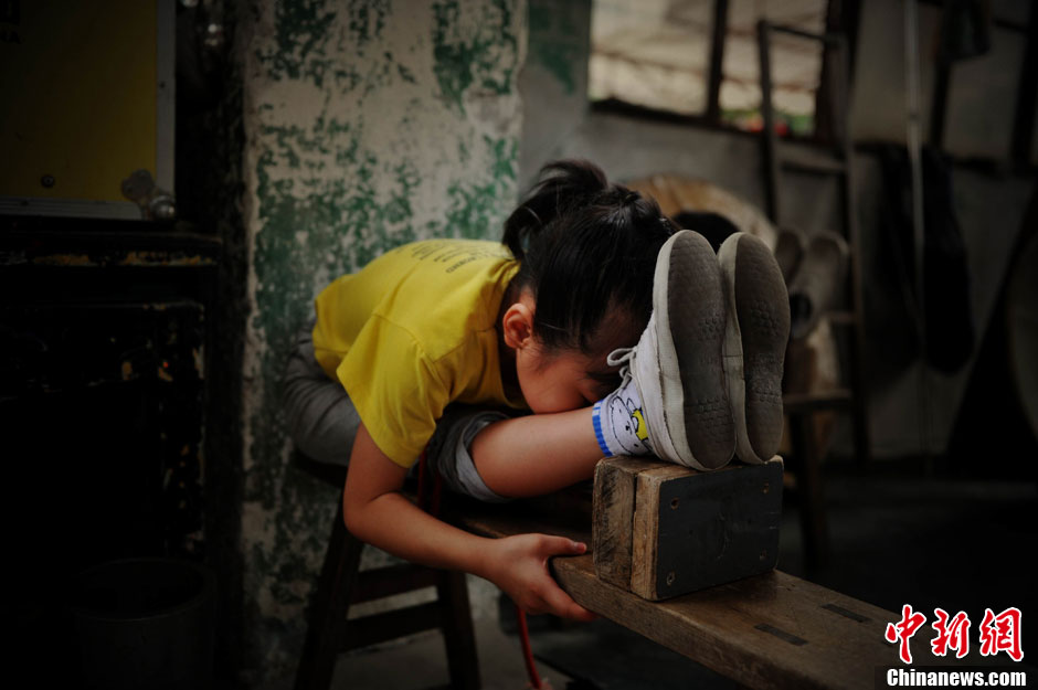 7歲,本應(yīng)是在父母懷里撒嬌的年齡,小秀華卻在福建省雜技團(tuán)訓(xùn)練場(chǎng)里度過(guò)一年的時(shí)間。壓腿、倒立、彎腰等基本功已練得扎扎實(shí)實(shí)。小秀華來(lái)自湖南,目前是團(tuán)里最小的學(xué)員,父母將她送來(lái)后已經(jīng)返回家鄉(xiāng),在這里的一切除了老師就靠她自己。但在記者看來(lái),她已表現(xiàn)出和自己年齡不符的成熟和堅(jiān)強(qiáng)。在訓(xùn)練過(guò)程中,有的動(dòng)作不是常人所能想象的痛苦,小秀華在無(wú)法忍受的時(shí)候從不會(huì)叫出聲,只會(huì)自己默默的流出眼淚,在外人看來(lái)感覺(jué)很心酸,但她自己卻覺(jué)得這是應(yīng)該的,所謂臺(tái)上一分鐘臺(tái)下十年功,小小的秀華已經(jīng)領(lǐng)悟到了。