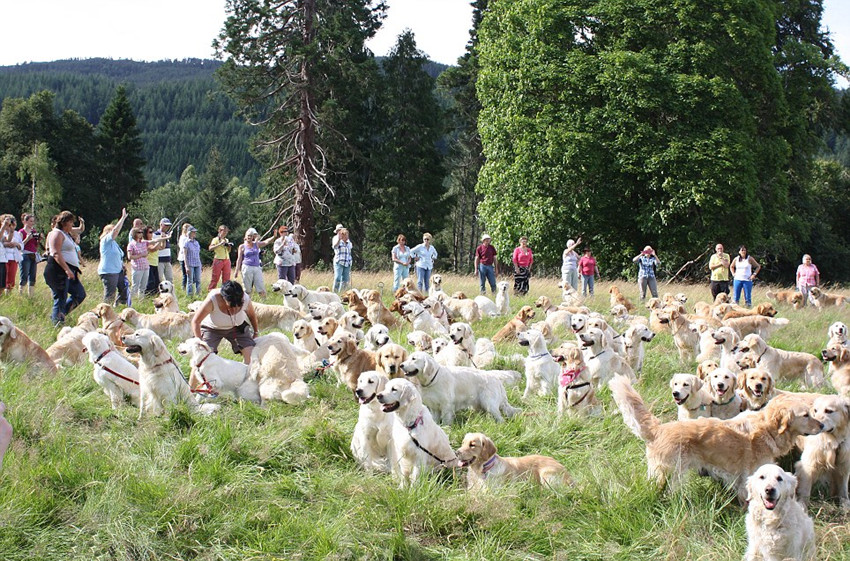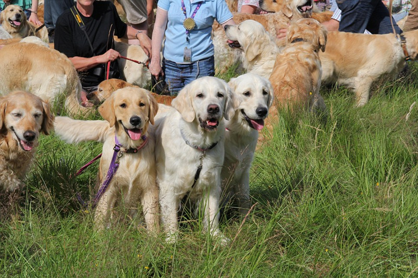 金毛犬,又名金毛尋回犬(Golden Retriever),其友好溫順的個(gè)性深得人們喜愛,在全球累積了不少“金毛粉絲”。據(jù)英國《每日郵報(bào)》8月13日報(bào)道,英國北部蘇格蘭的金毛俱樂部在上個(gè)月舉辦了第三場世界級的金毛犬聚會(huì),邀請全世界的金毛飼養(yǎng)者帶著他們可愛的寵物——金毛犬,前來共享這一歡樂的時(shí)刻。而最終參加這個(gè)聚會(huì)的,有222只金毛犬。