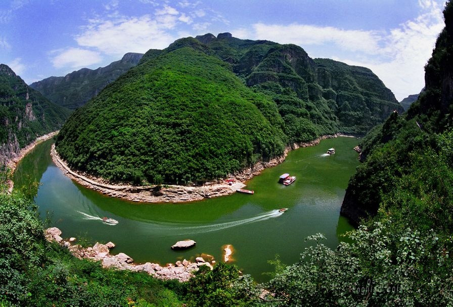 青天河濱水棧道全長(zhǎng)8000米,沿大泉湖西岸而建,依山就勢(shì),臨水傍湖,為游客近距離觀賞大泉湖、駱駝峰、千奇洞、鯨魚(yú)灣等精品景點(diǎn)提供了便利。沿棧道前行,可以穿深峽、探幽谷、覓奇洞,移步換景,峰回路轉(zhuǎn),偶爾幾掛飛瀑,驀然一處險(xiǎn)峰,一山一天地,一灣一境界。穿行于棧道,恰似穿行于一條奇妙的丹青畫(huà)廊,聽(tīng)山水清音,賞湖光山色,歷人間仙境,覓世外桃源,于你是一次物我兩忘的精神之旅。