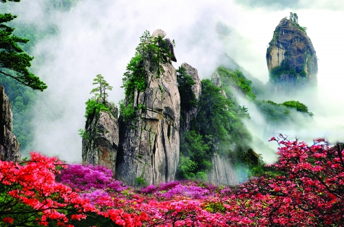 堯山俊俏的山峰、秀美的瀑布、奇異的迎客松、動植物等資源一直深深吸引著廣大游客,特別是春季,堯山山花次第開放,踏青拜佛泡溫泉,在游客中掀起了去堯山旅游的大潮。筆者從堯山景區(qū)了解,堯山杜鵑節(jié)已于4月20日拉開帷幕,今年的杜鵑特別繁茂、艷麗,目前,山門至迎鳳樹附近的杜鵑已全部開放,叢叢紅、粉杜鵑綻放在懸崖上,飽含著堯山的熱情奔放,掩映于叢林中,蘊(yùn)藏著堯山的含蓄與嬌羞?!?/p>