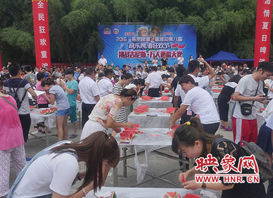 “挑戰(zhàn)吉尼斯 萬人吃西瓜”是由欒川重渡溝風景區(qū)和鄭州支點旅游品牌策劃有限公司聯(lián)合打造的2016“燕京啤酒”重渡溝第八屆音樂啤酒狂歡節(jié)狂歡不停歇第三期主題活動。當日重渡溝景區(qū)熱鬧非凡,擺滿誘人西瓜的小方桌次第擺開,翠綠的皮、鮮紅的瓤、瓜香四溢。游客們熱情參與,現場妙趣橫生。有“推土機”式掃蕩吃法,有“生猛”地大口吞咽,有小朋友萌態(tài)啃瓜表情十足......真是吃得爽快,玩得暢快,贏得痛快。比賽分為“狼吞虎咽”男子組、“大快朵頤”女子組,每組冠軍將獲得3000元現金大獎。經過淘汰賽、決賽層層激烈角逐,最終比賽決出男女子組一、二、三等獎各一名,所有參賽選手都乘興而來,滿載而歸!“來重渡溝吃西瓜感覺特別甜,特別痛快!從來沒有跟這么多人一起吃西瓜,一口氣連吃三塊還不過癮!”一位游客笑著對記者說。
