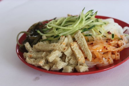 水席的得名其實(shí)也好理解,就是“湯湯水水”,每道菜肴多多少少都有些湯水,即便是模樣類似梅菜扣肉的腐乳肉,肉片下面也潤(rùn)著些紅腐乳湯的水水潤(rùn)潤(rùn)。原以為水席不過(guò)是招攬外地過(guò)客的美食窗口,卻不想洛陽(yáng)老城西大街附近的水席一家挨一家,一時(shí)間“水漫金山”。一些水席老店在洛陽(yáng)有著好口碑,于是堂而皇之找去,卻不想11點(diǎn)出頭的光景早已客滿,老板娘的話客氣中帶著自信,“您明天早點(diǎn)來(lái)?!?/p>
